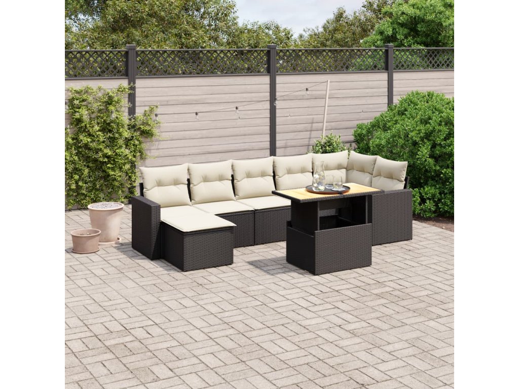 8dílná zahradní sedací souprava s poduškami černá polyratan 3271420