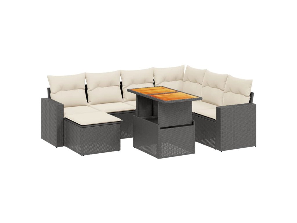 8dílná zahradní sedací souprava s poduškami černá polyratan 3271427