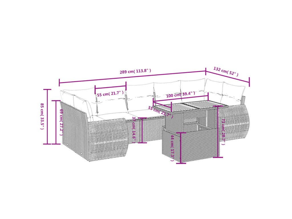 Tato zahradní sedací souprava je dokonalým doplňkem vaší zahrady, terasy nebo dvorku a poskytne vám pohodlné a příjemné místo, kde si můžete povídat s rodinou a přáteli nebo jen tak odpočívat a užívat si pobyt venku.