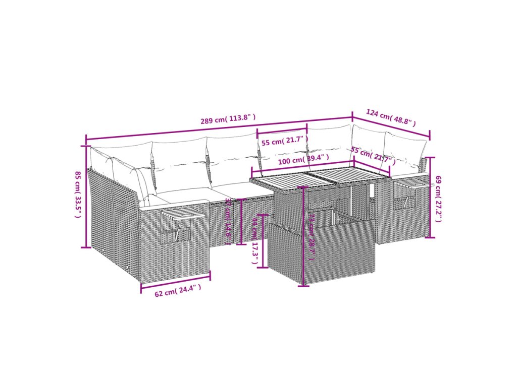 Tato zahradní sedací souprava je dokonalým doplňkem vaší zahrady, terasy nebo dvorku a poskytne vám pohodlné a příjemné místo, kde si můžete povídat s rodinou a přáteli nebo jen tak odpočívat a užívat si pobyt venku.