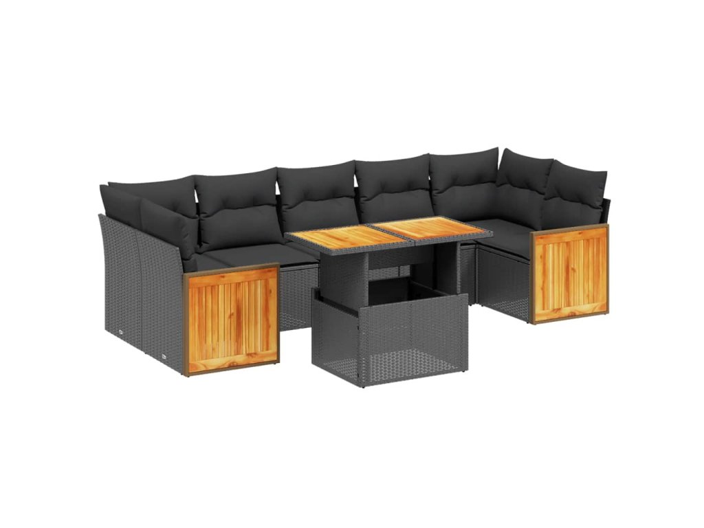 8dílná zahradní sedací souprava s poduškami černá polyratan 3273869