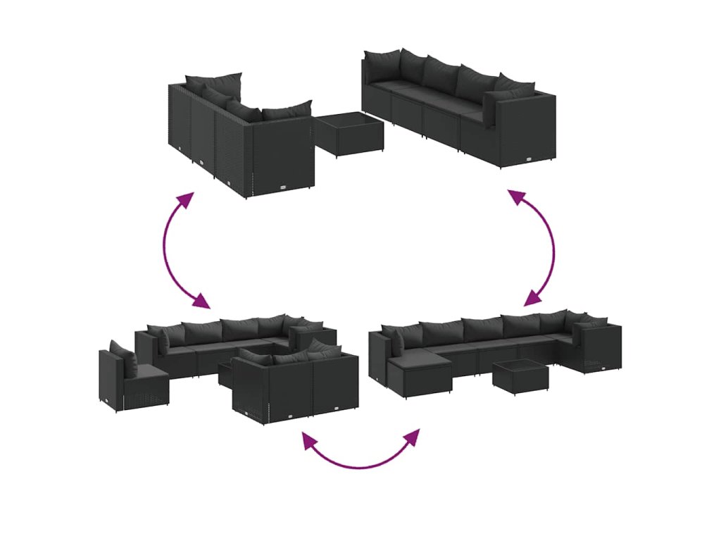 8dílná zahradní sedací souprava s poduškami černá polyratan 3308235