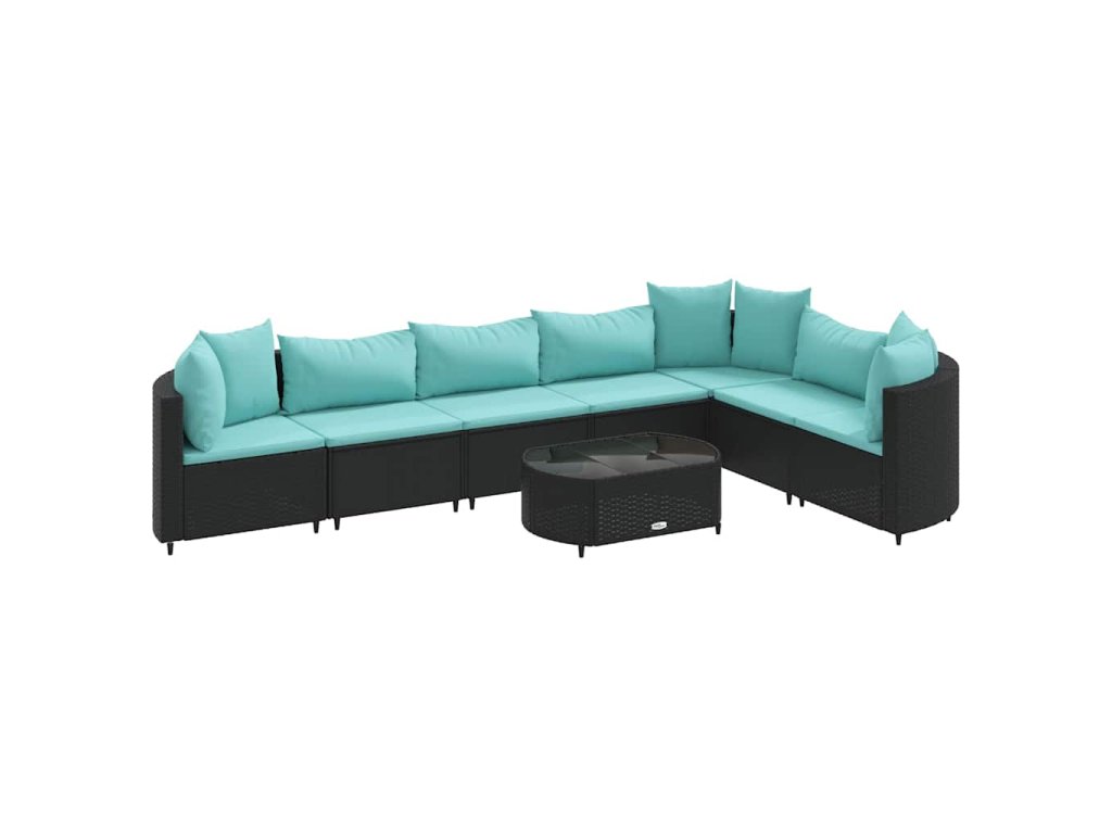 8dílná zahradní sedací souprava s poduškami černá polyratan 3308388