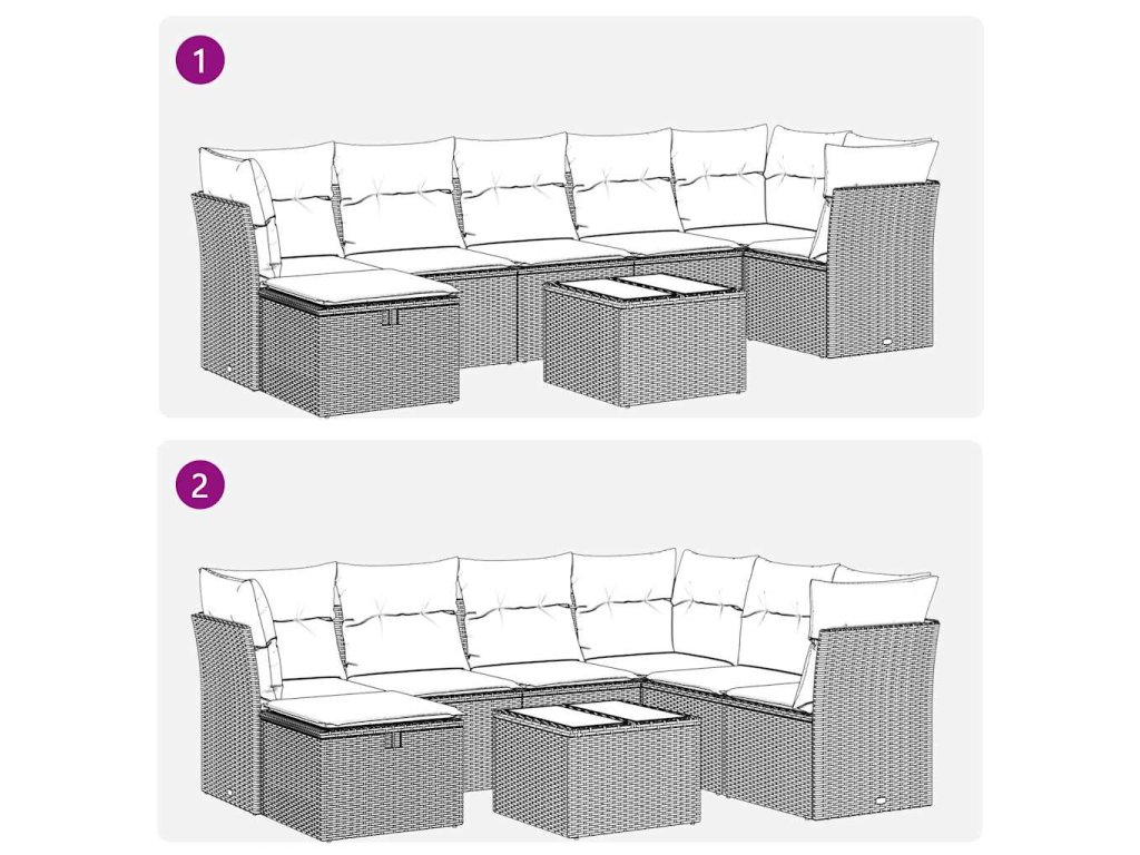 - Modulární design: Tato sada venkovního nábytku se vyznačuje modulární konstrukcí, je tedy zcela flexibilní a lze ji snadno přemisťovat, takže si můžete uspořádat venkovní nábytek dle vašich potřeb.