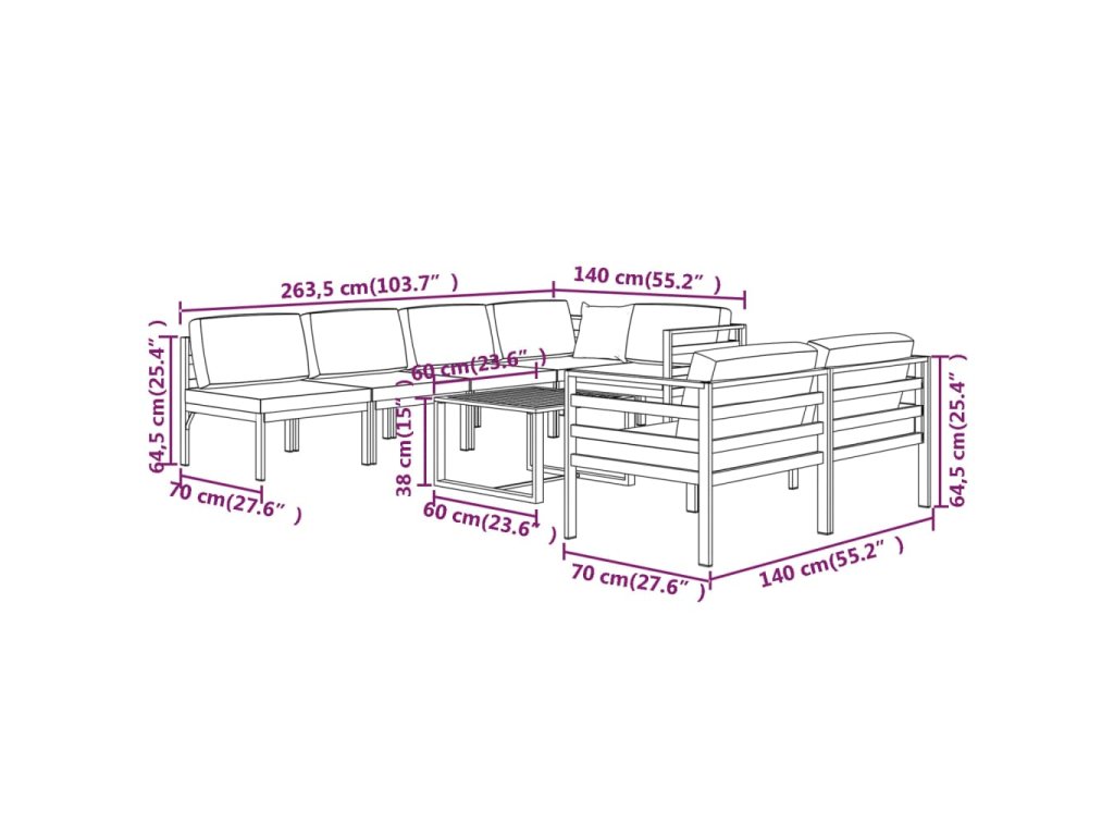 8dílná zahradní sedací souprava s poduškami hliník antracitová 3107820