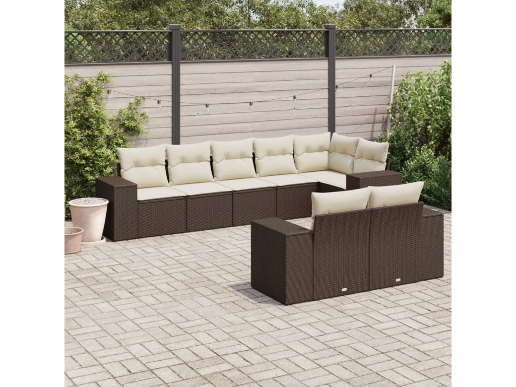 8dílná zahradní sedací souprava s poduškami hnědá polyratan 3222822