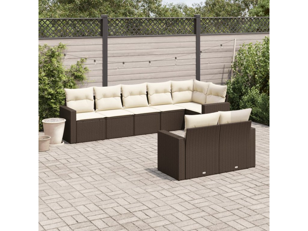 8dílná zahradní sedací souprava s poduškami hnědá polyratan 3251560