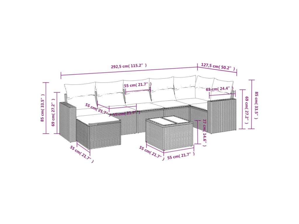 8dílná zahradní sedací souprava s poduškami hnědá polyratan 3251630