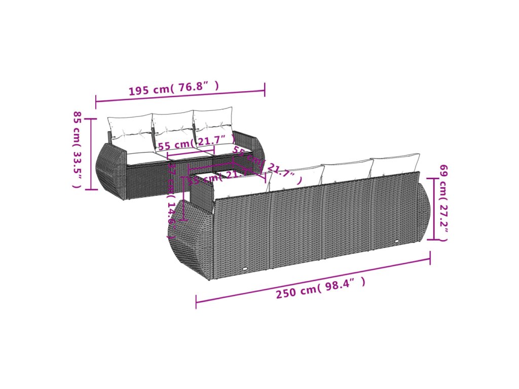 8dílná zahradní sedací souprava s poduškami hnědá polyratan 3253470