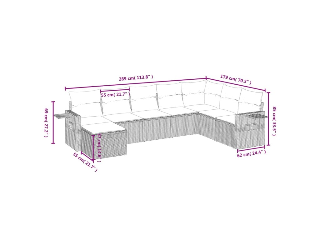 8dílná zahradní sedací souprava s poduškami hnědá polyratan 3263899