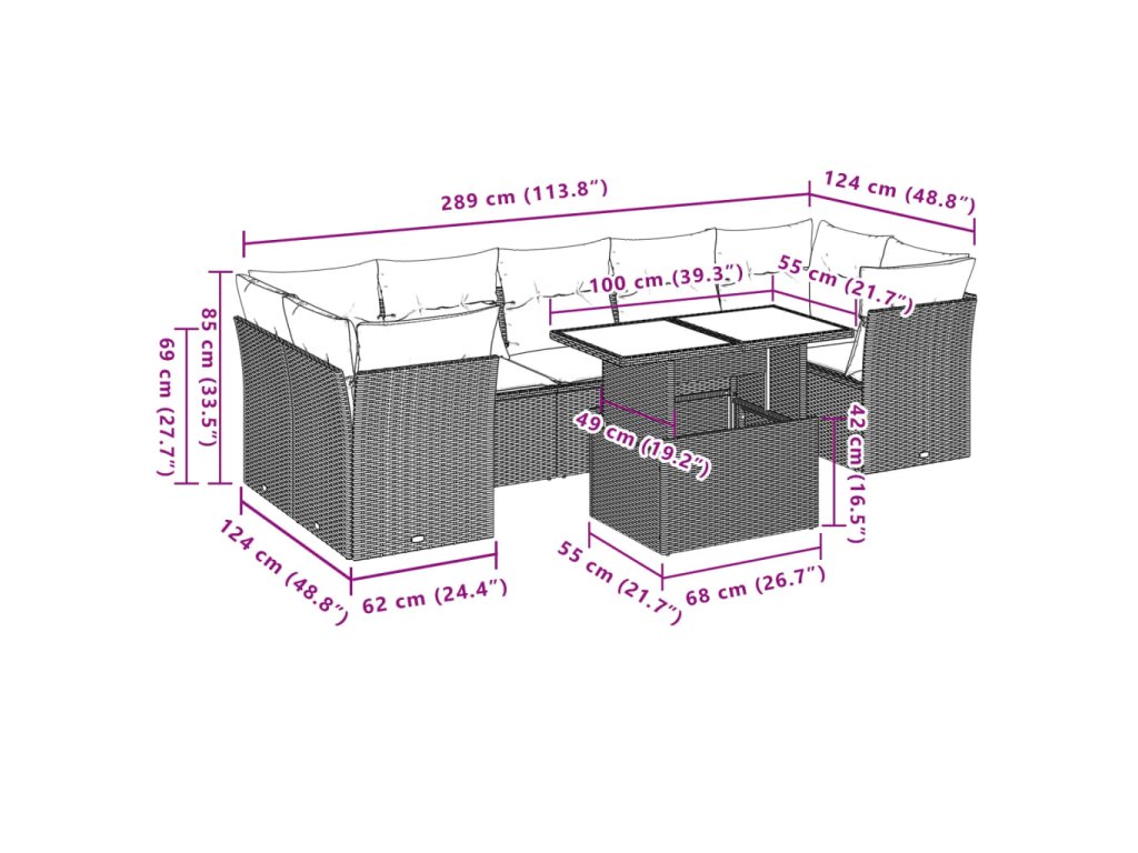 8dílná zahradní sedací souprava s poduškami hnědá polyratan 3266403
