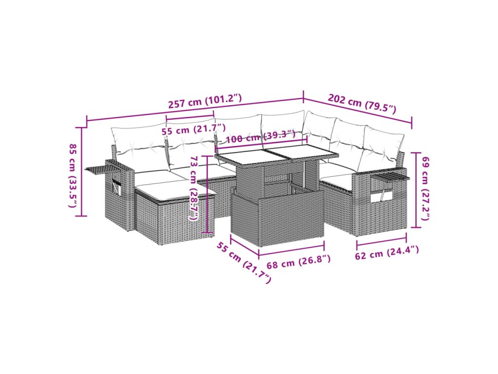 Tato zahradní sedací souprava je dokonalým doplňkem vaší zahrady, terasy nebo dvorku a poskytne vám pohodlné a příjemné místo, kde si můžete povídat s rodinou a přáteli nebo jen tak odpočívat a užívat si pobyt venku.