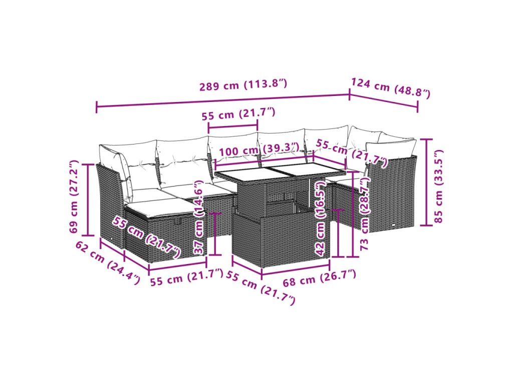 Tato zahradní sedací souprava je dokonalým doplňkem vaší zahrady, terasy nebo dvorku a poskytne vám pohodlné a příjemné místo, kde si můžete povídat s rodinou a přáteli nebo jen tak odpočívat a užívat si pobyt venku.