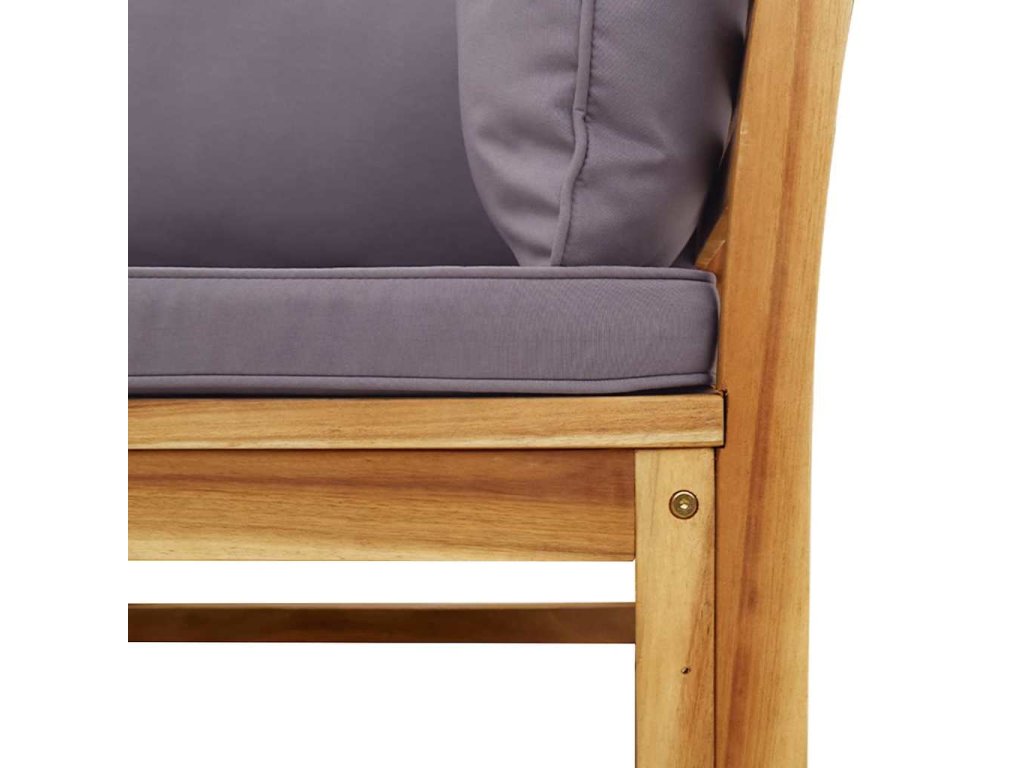 - Lamelový design: Lamelová konstrukce dřevěné sestavy účinně zabraňuje hromadění vody a zajišťuje tak, že sedák zůstane suchý a chráněný proti případné hnilobě.
