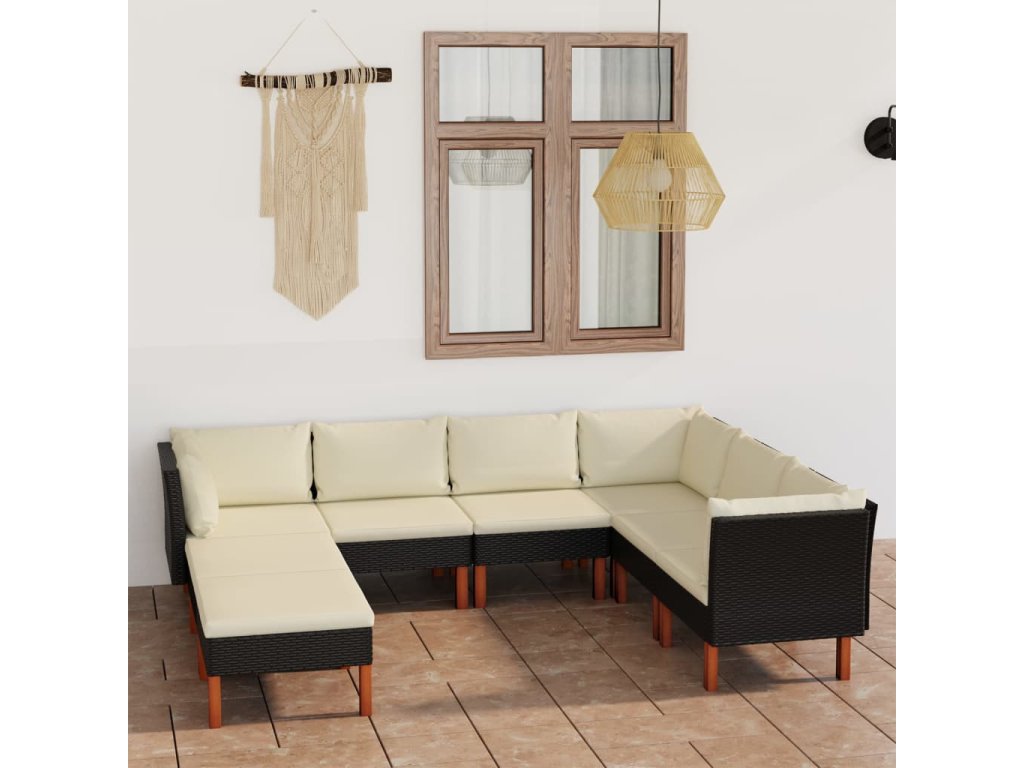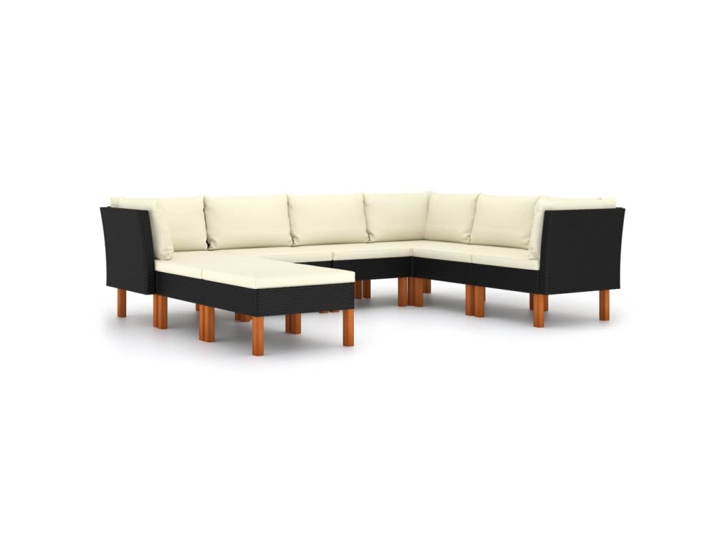 8dílná zahradní sedací souprava s poduškami polyratan černá 3059741