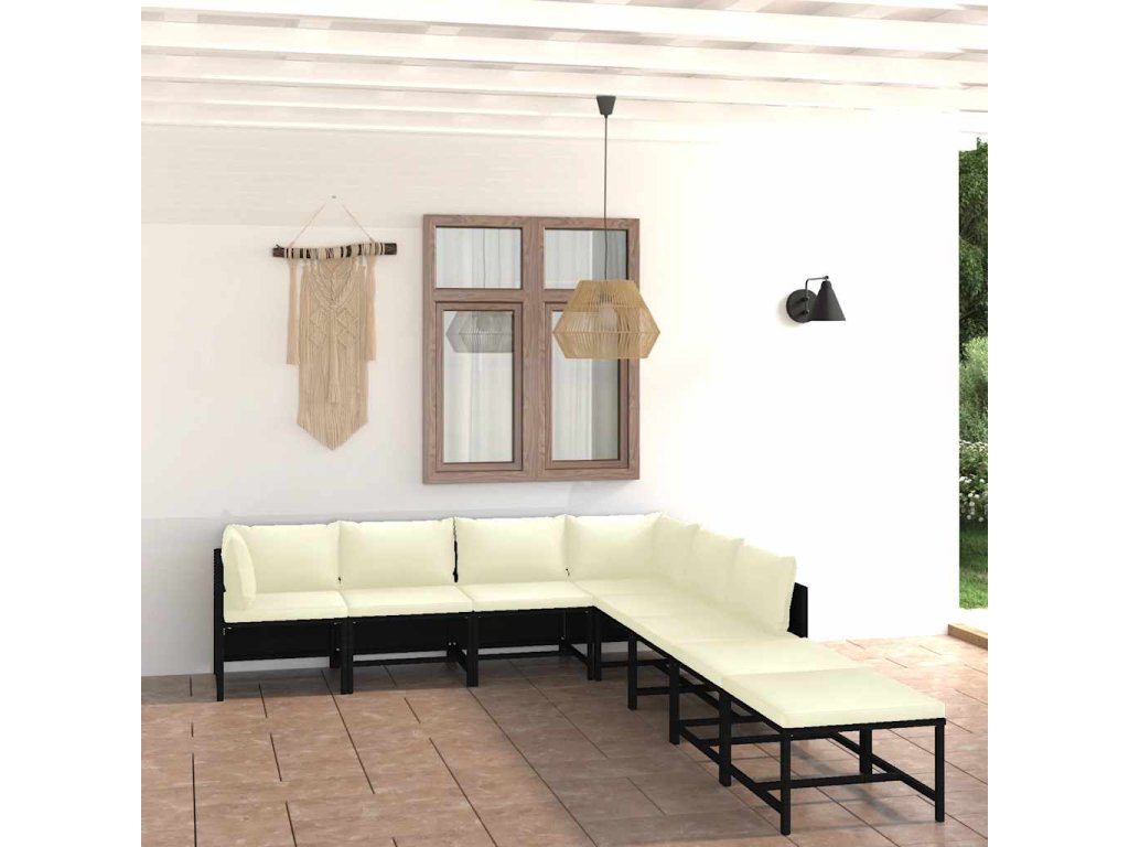 8dílná zahradní sedací souprava s poduškami polyratan černá 3059793