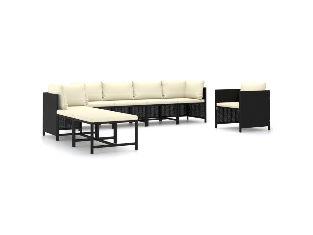8dílná zahradní sedací souprava s poduškami polyratan černá 3059796