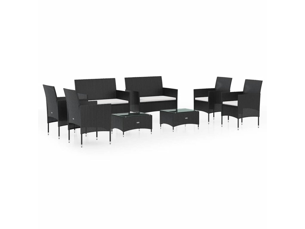 8dílná zahradní sedací souprava s poduškami polyratan černá 3095955
