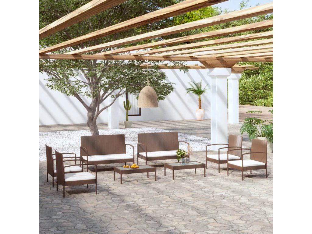 8dílná zahradní sedací souprava s poduškami polyratan hnědá 3095965