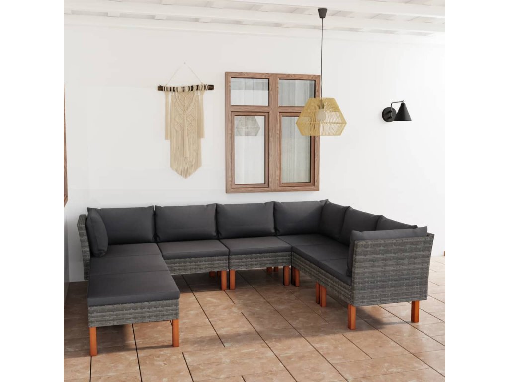 8dílná zahradní sedací souprava s poduškami polyratan šedá 3059719