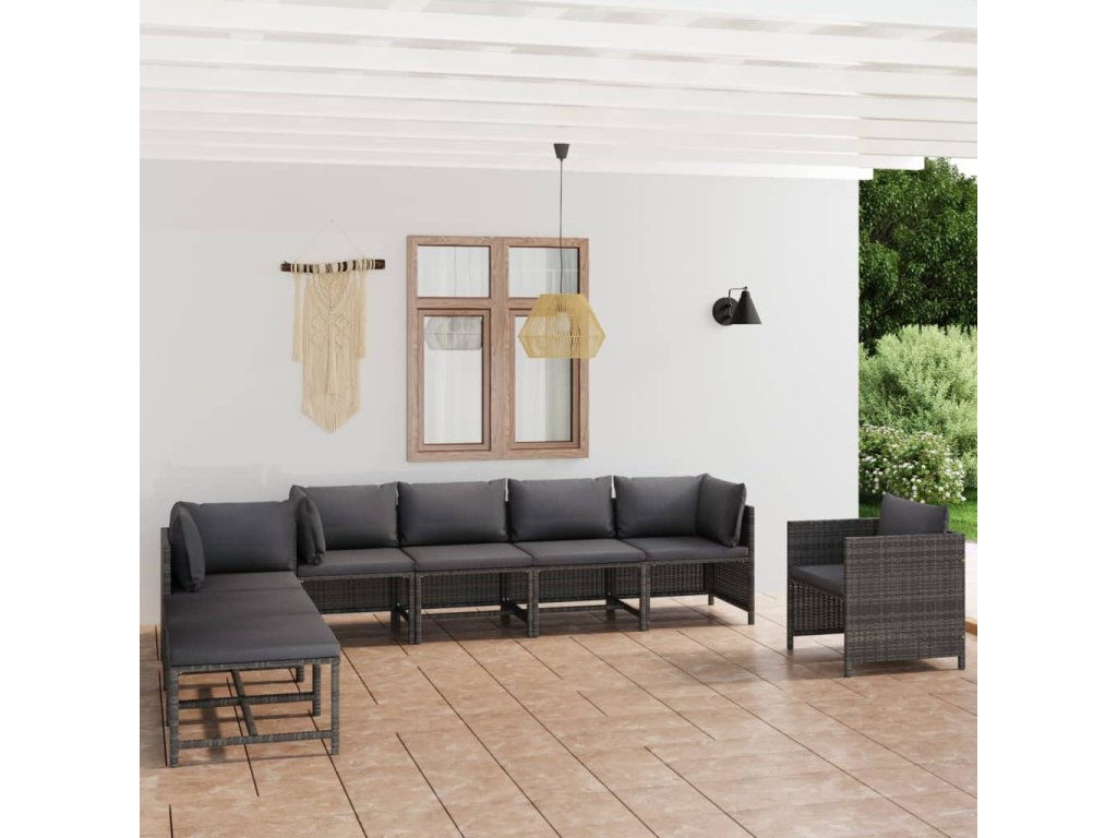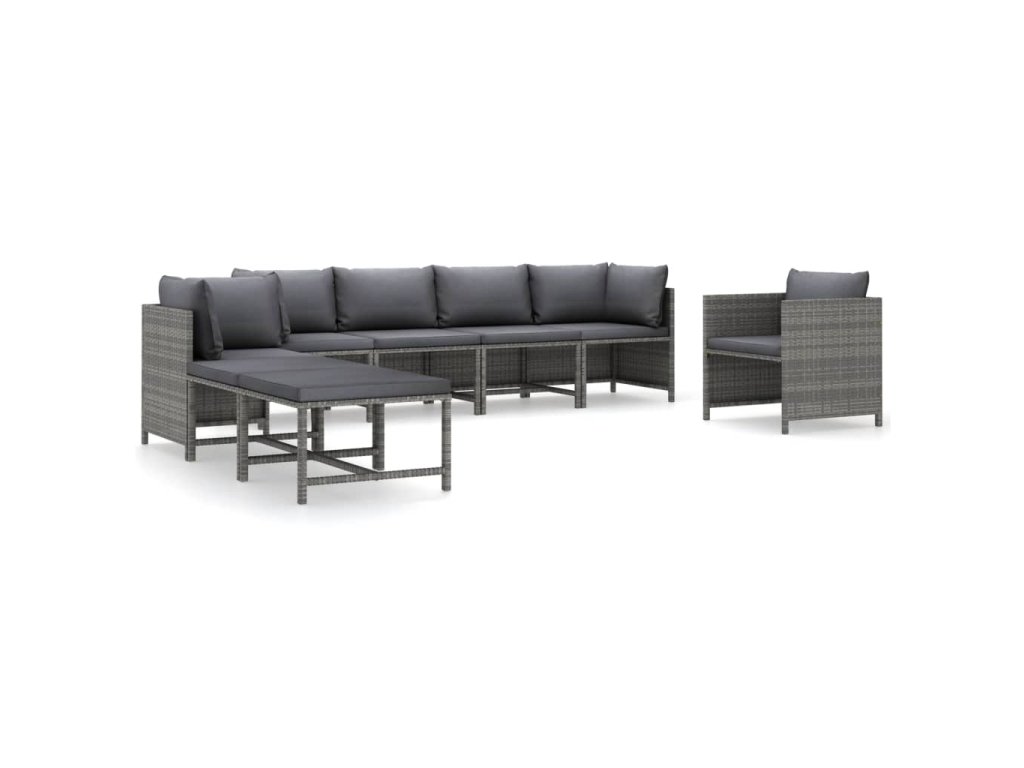 8dílná zahradní sedací souprava s poduškami polyratan šedá 3059769