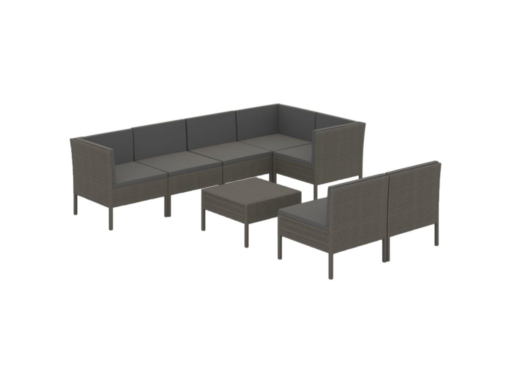 8dílná zahradní sedací souprava s poduškami polyratan šedá 3094394