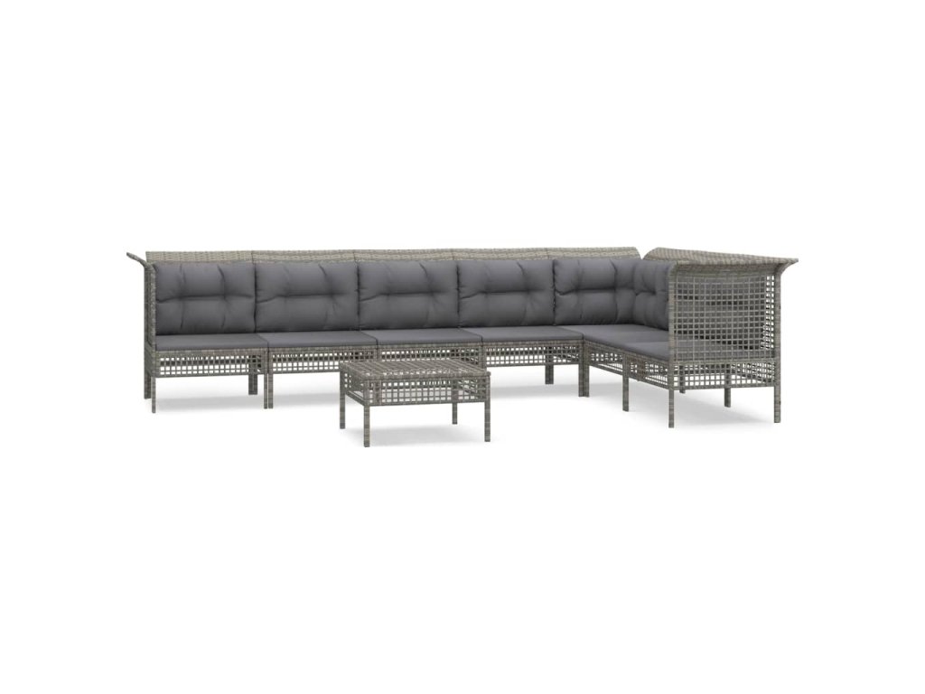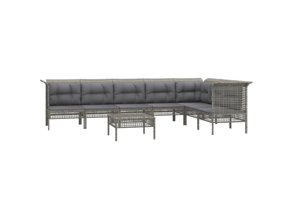 8dílná zahradní sedací souprava s poduškami šedá polyratan 3187518