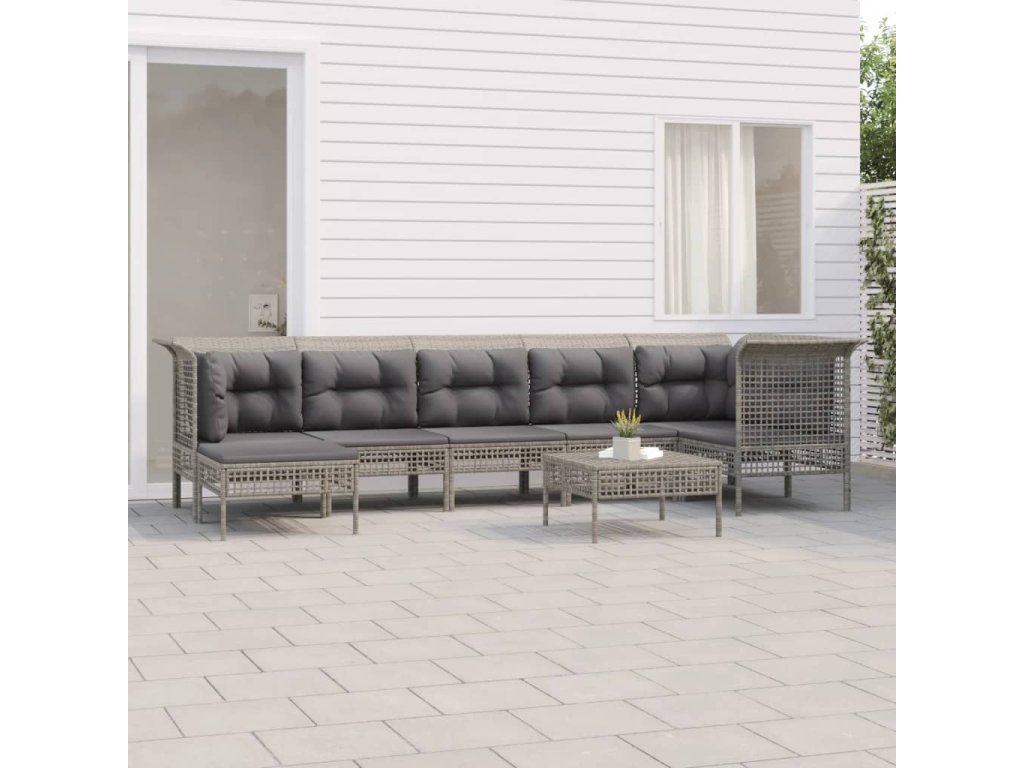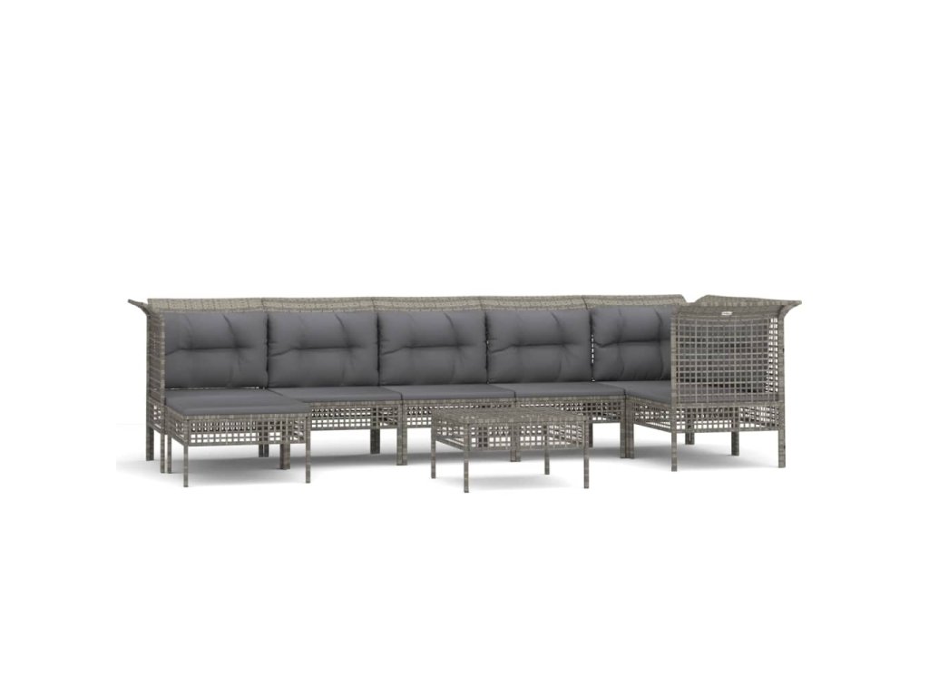 8dílná zahradní sedací souprava s poduškami šedá polyratan 3187551