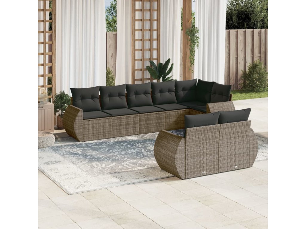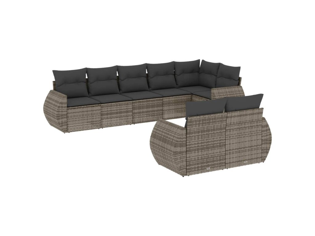 8dílná zahradní sedací souprava s poduškami šedá polyratan 3221619