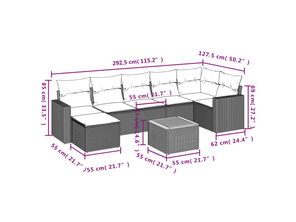 8dílná zahradní sedací souprava s poduškami šedá polyratan 3224233