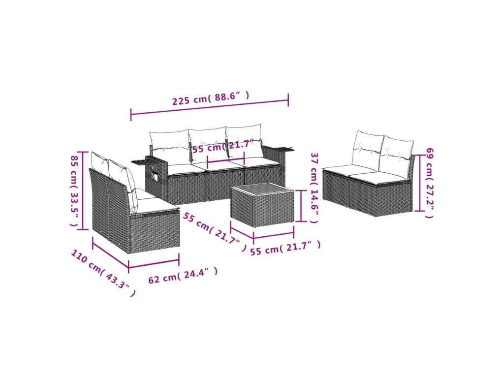 8dílná zahradní sedací souprava s poduškami šedá polyratan 3224520