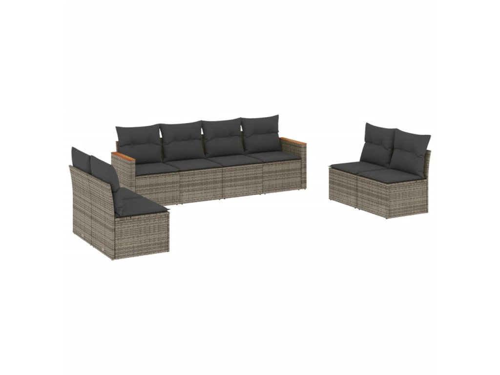 8dílná zahradní sedací souprava s poduškami šedá polyratan 3225892