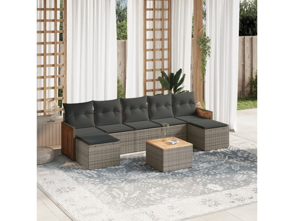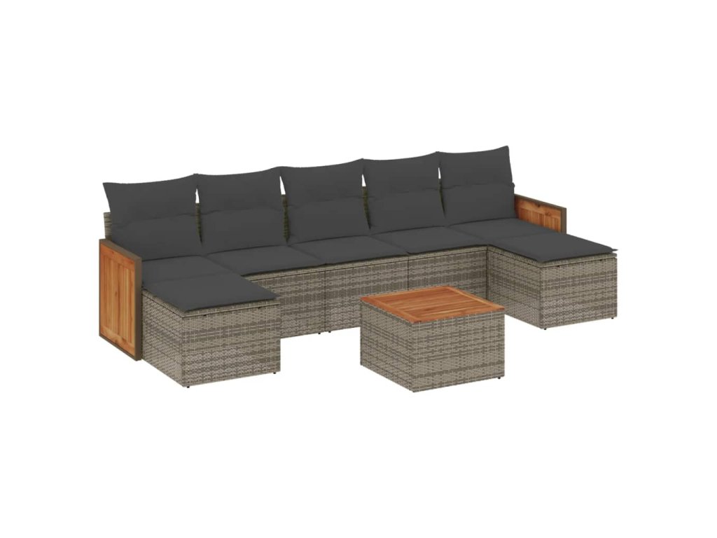 8dílná zahradní sedací souprava s poduškami šedá polyratan 3227922