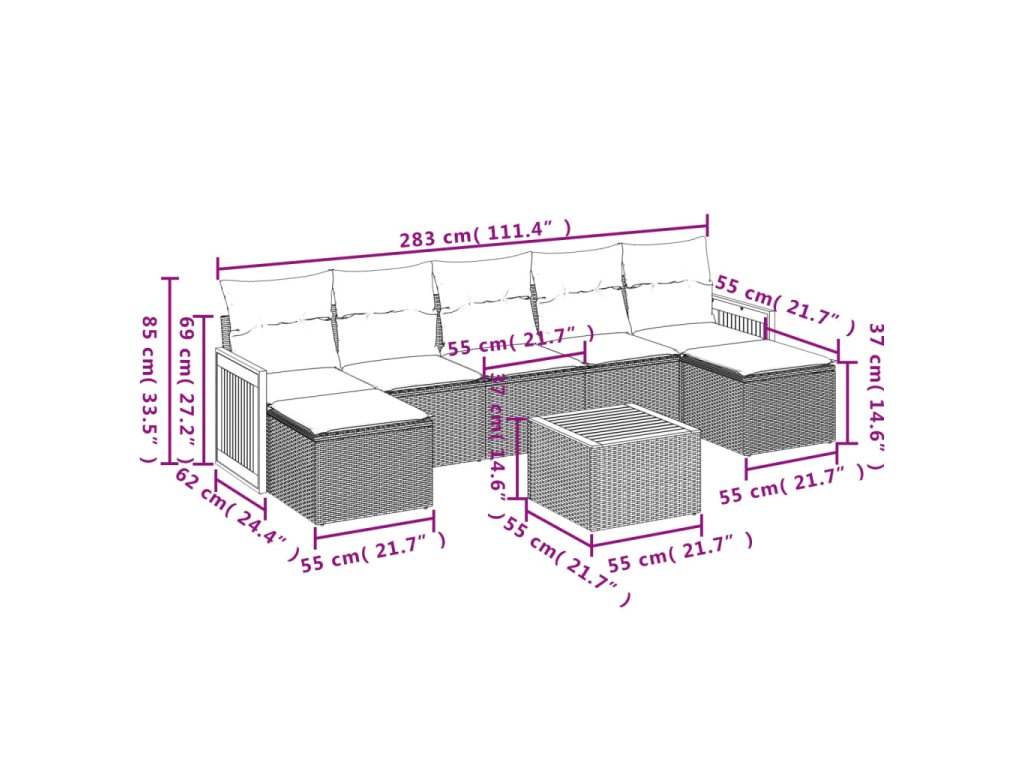 Tato zahradní sedací souprava je dokonalým doplňkem vaší zahrady, terasy nebo dvorku a poskytne vám pohodlné a příjemné místo, kde si můžete povídat s rodinou a přáteli nebo jen tak odpočívat a užívat si pobyt venku.