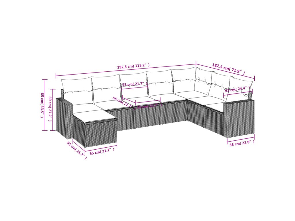 8dílná zahradní sedací souprava s poduškami šedá polyratan 3251697
