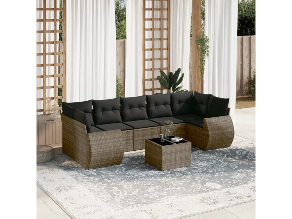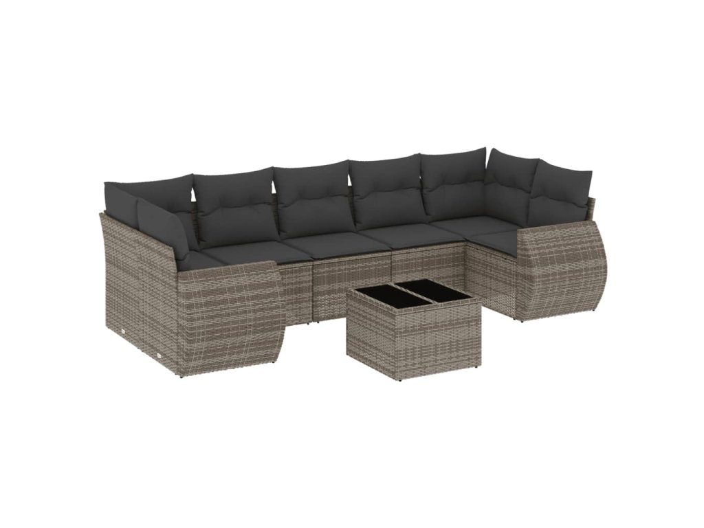 8dílná zahradní sedací souprava s poduškami šedá polyratan 3253477