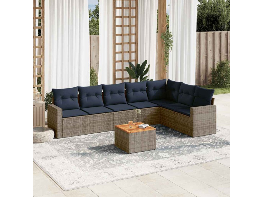 8dílná zahradní sedací souprava s poduškami šedá polyratan 3256488