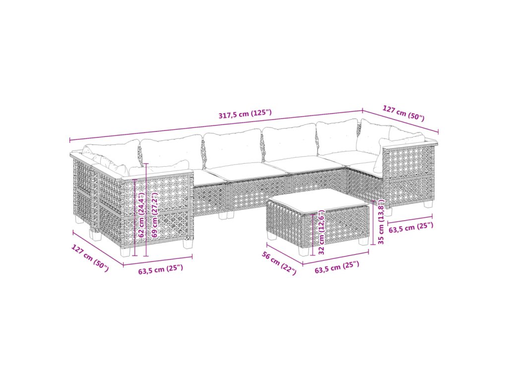 8dílná zahradní sedací souprava s poduškami šedá polyratan 3261765