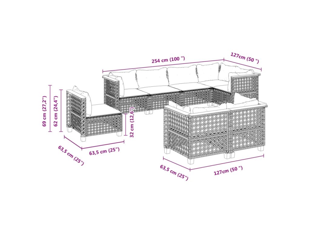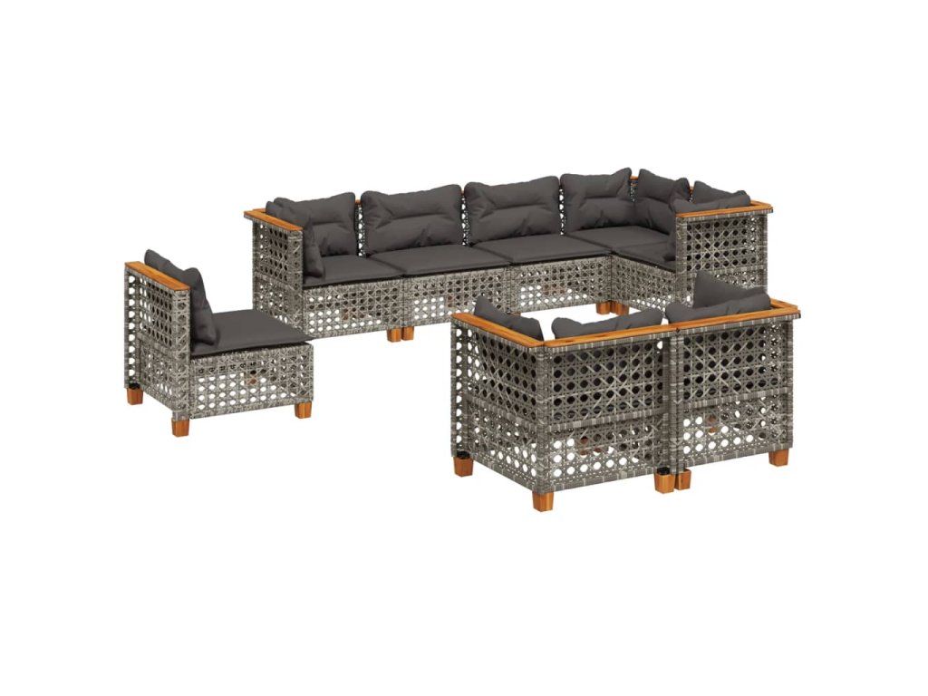 8dílná zahradní sedací souprava s poduškami šedá polyratan 3261903