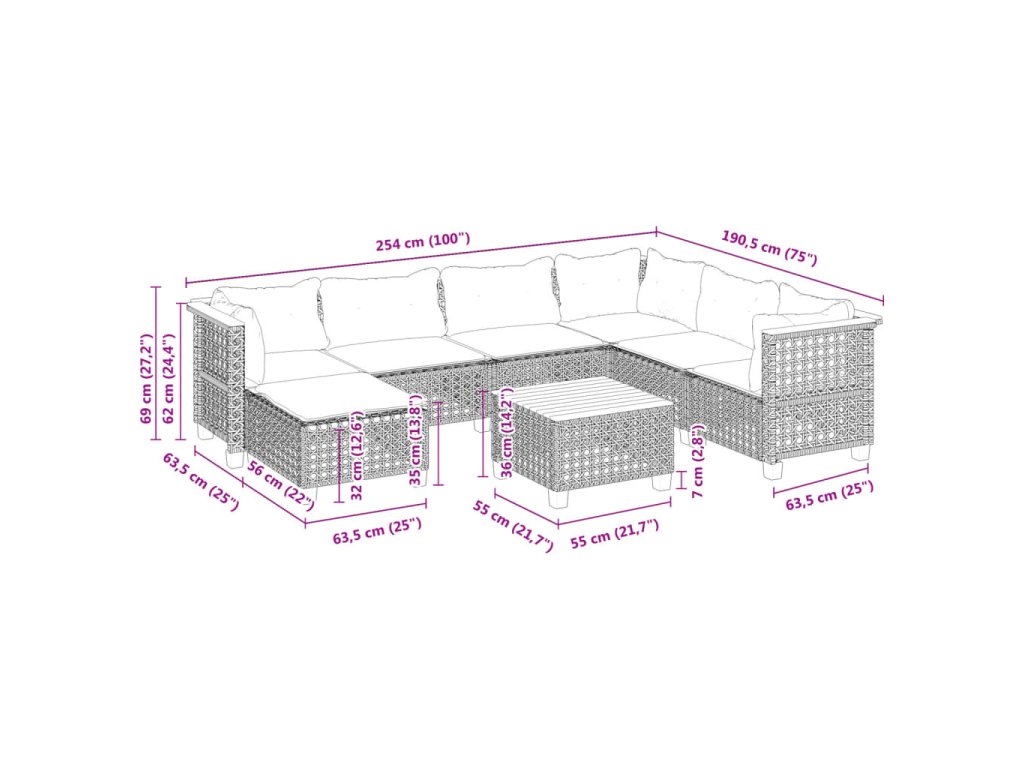 8dílná zahradní sedací souprava s poduškami šedá polyratan 3261945