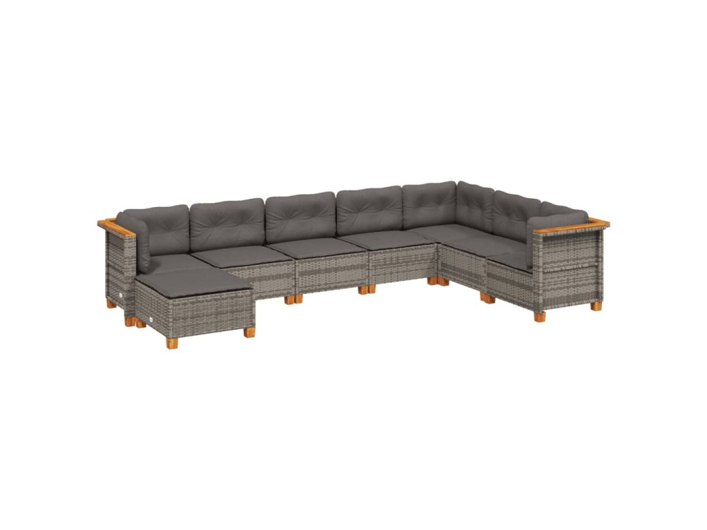 8dílná zahradní sedací souprava s poduškami šedá polyratan 3261954