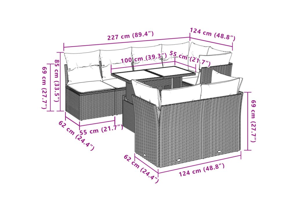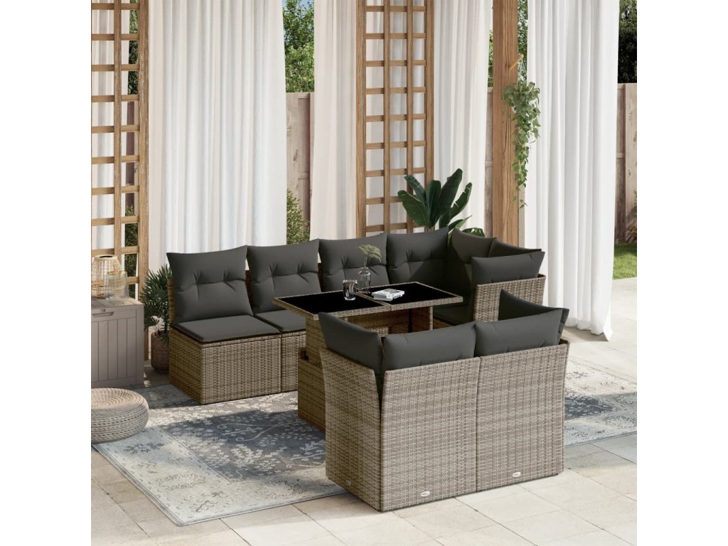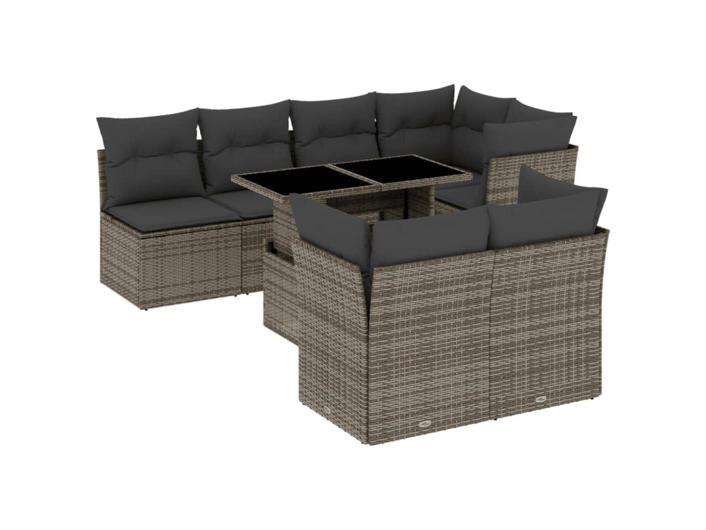 8dílná zahradní sedací souprava s poduškami šedá polyratan 3266410
