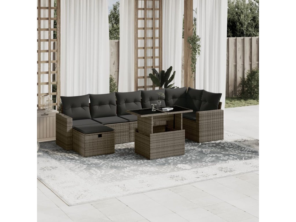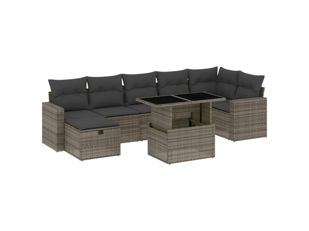 8dílná zahradní sedací souprava s poduškami šedá polyratan 3274830