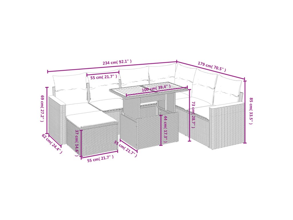Tato zahradní sedací souprava je dokonalým doplňkem vaší zahrady, terasy nebo dvorku a poskytne vám pohodlné a příjemné místo, kde si můžete povídat s rodinou a přáteli nebo jen tak odpočívat a užívat si pobyt venku.