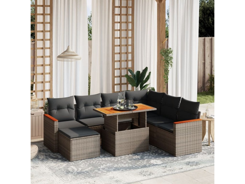 8dílná zahradní sedací souprava s poduškami šedá polyratan 3276056