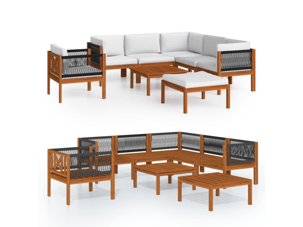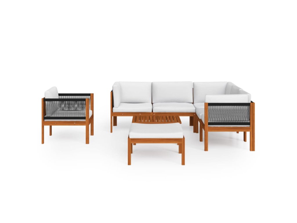 8dílná zahradní sedací souprava s polštáři krémové dřevo akácie a provaz 3057890