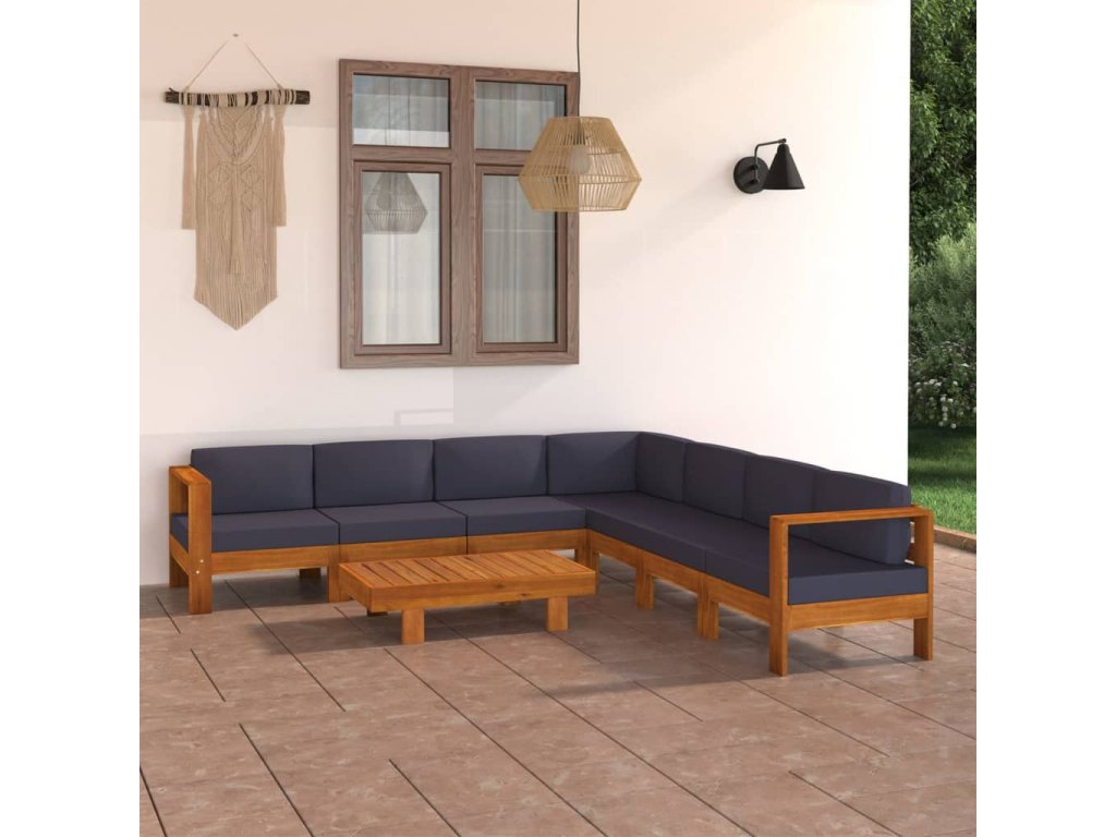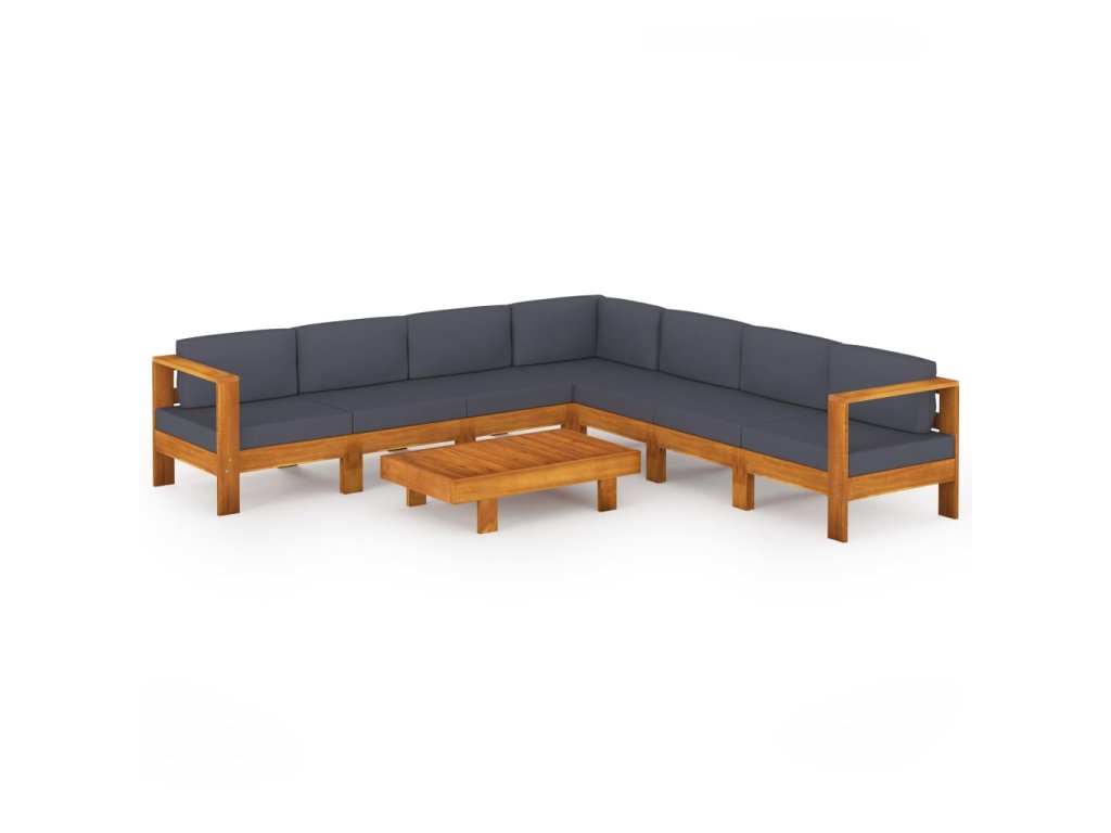 8dílná zahradní sedací souprava s tmavě šedými poduškami akácie 3057959
