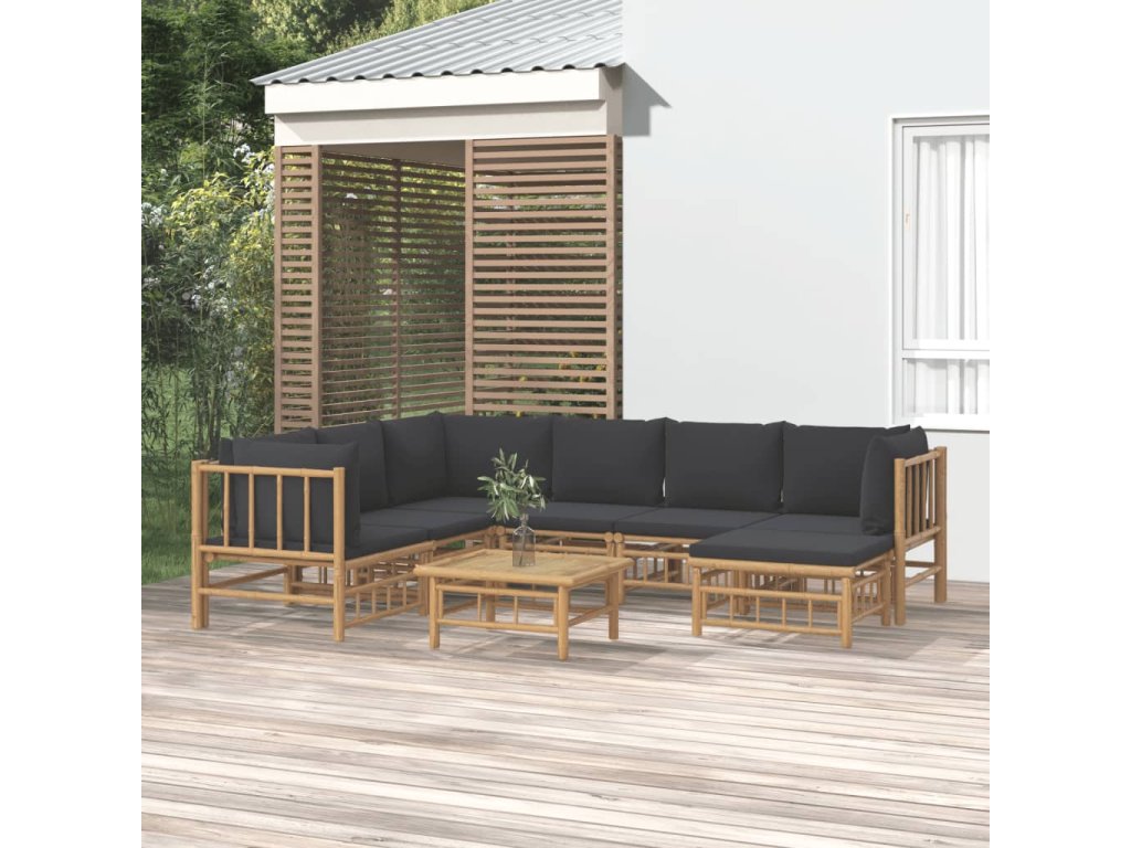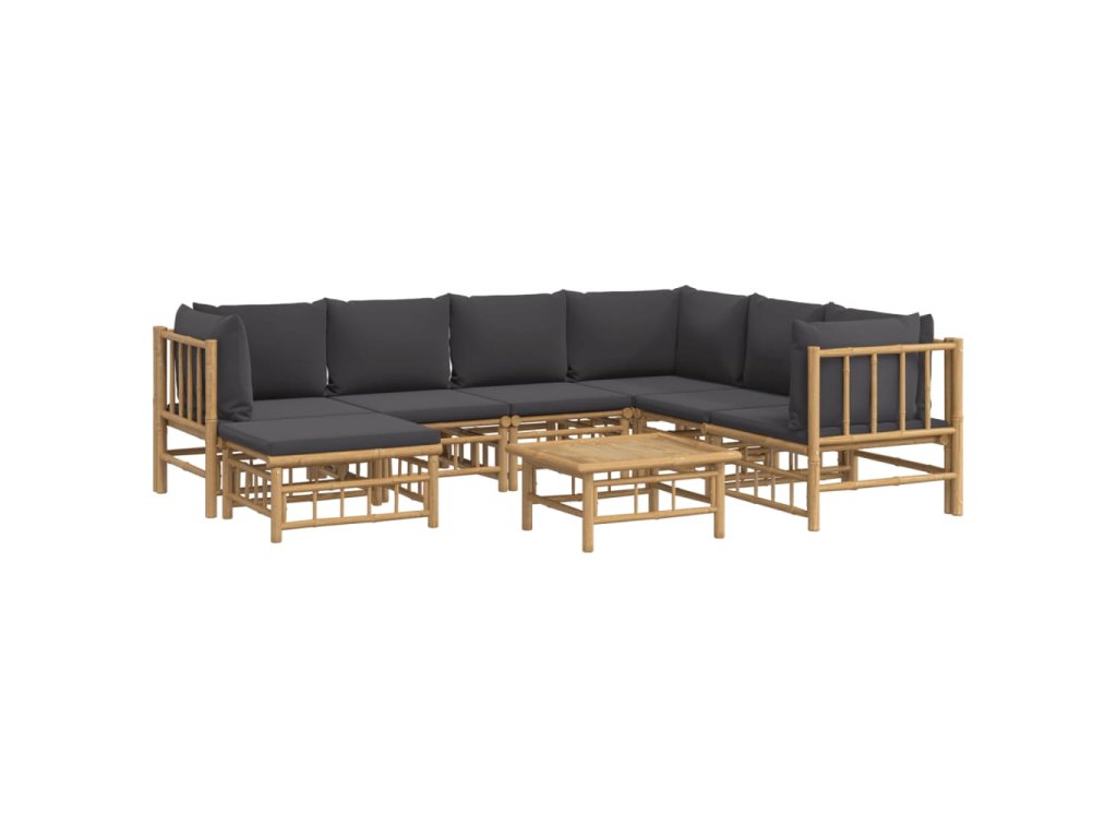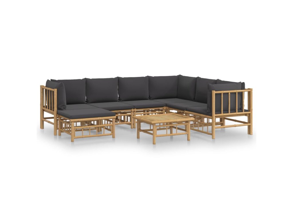 8dílná zahradní sedací souprava s tmavě šedými poduškami bambus 3155223