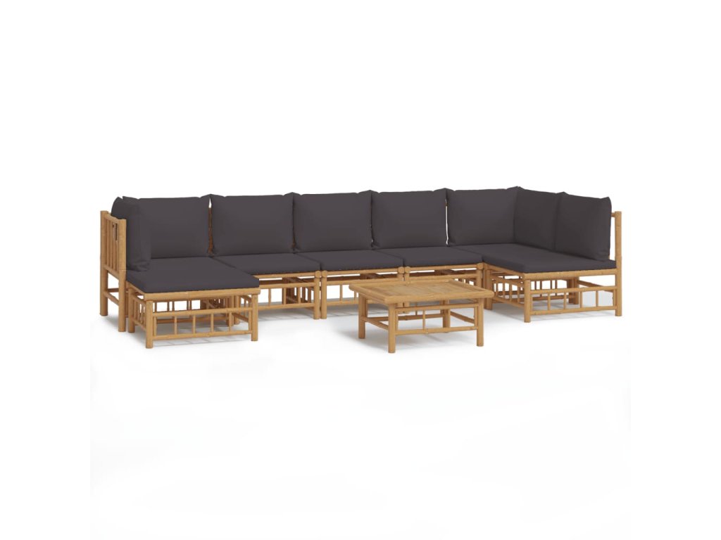 8dílná zahradní sedací souprava s tmavě šedými poduškami bambus 3155238