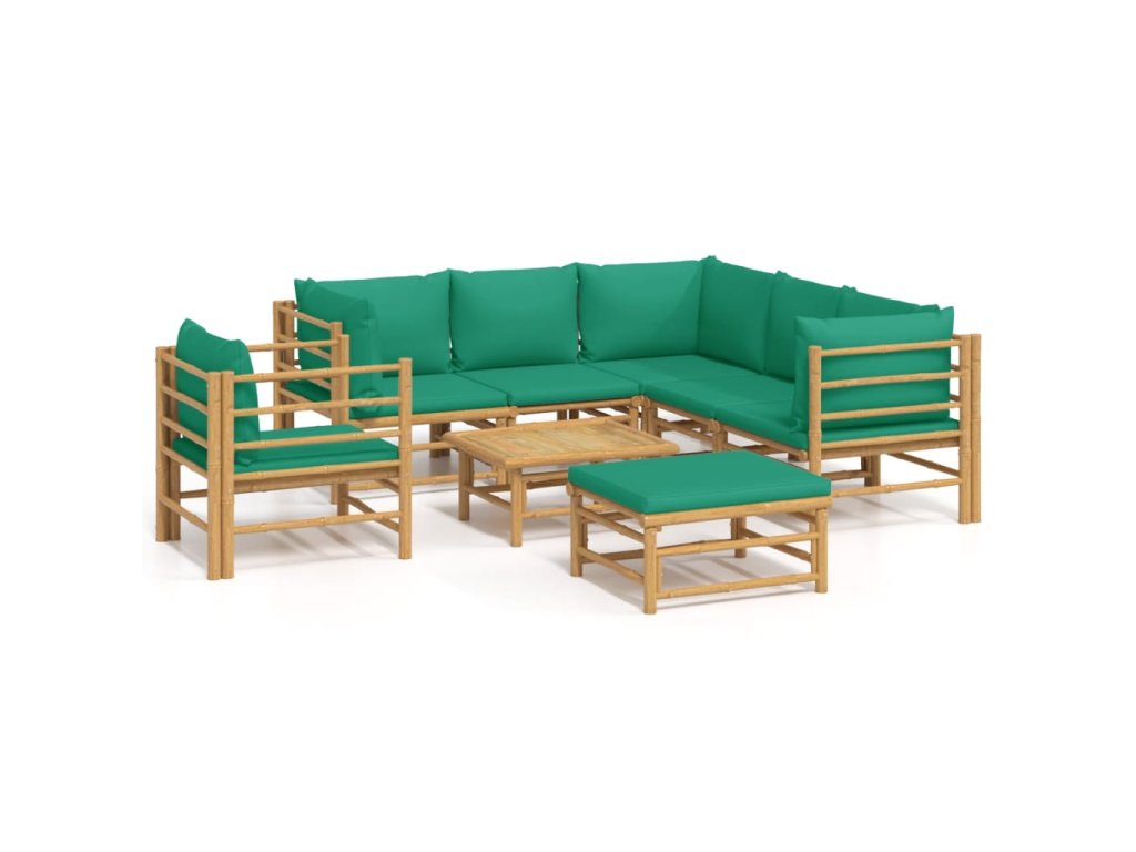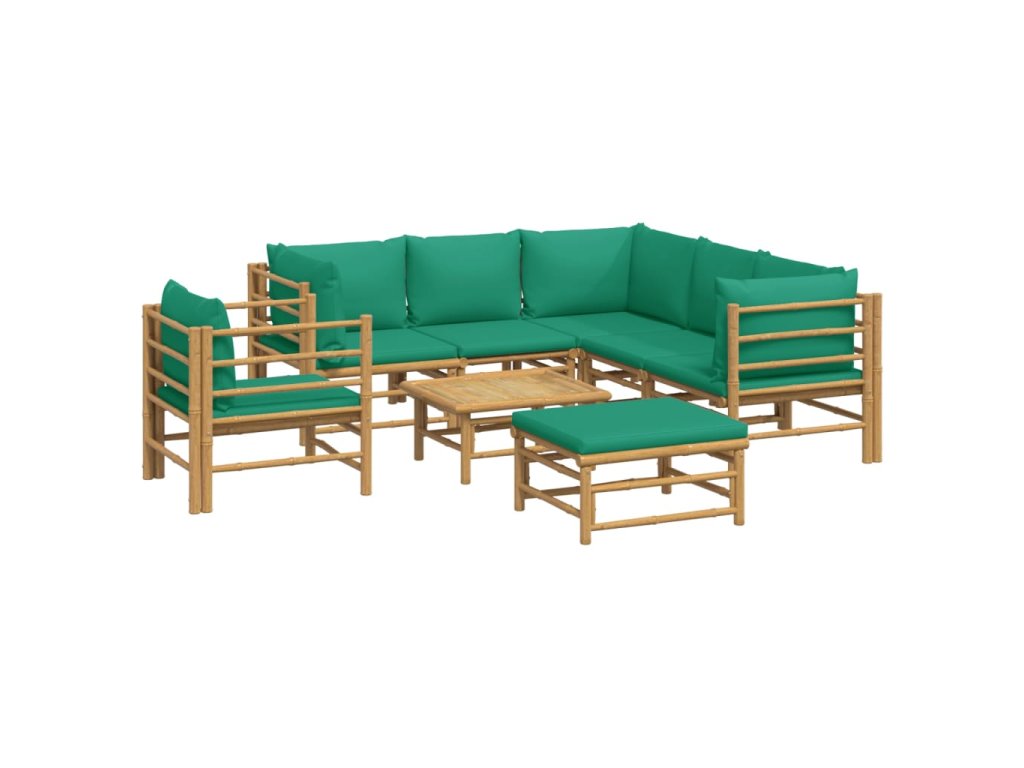 8dílná zahradní sedací souprava se zelenými poduškami bambus 3155158